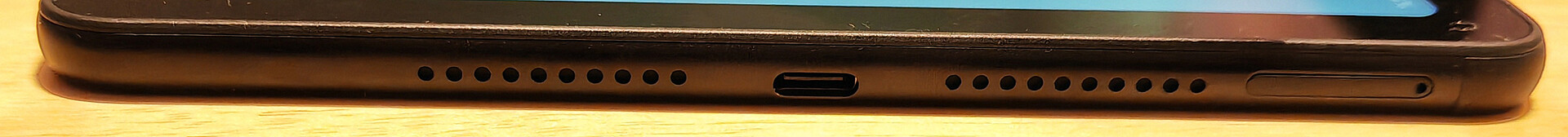 Für seine Größe ist das MatePad SE ein relativ leichtes Tablet mit 440 Gramm. Das Design ist dem MatePad T10S verwandt, allerdings ist die Verteilung der Anschlüsse anders und als Farbe ist nur Dunkelgrau erhältlich. Zudem ist das Tablet etwas kürzer, dafür aber breiter. Die Ränder um den Bildschirm sind gut dimensioniert, sodass man das Tablet in der Hand halten kann, ohne ungewollt Touchscreen-Befehle auszulösen und das Erscheinungsbild gleichzeitig modern wirkt.