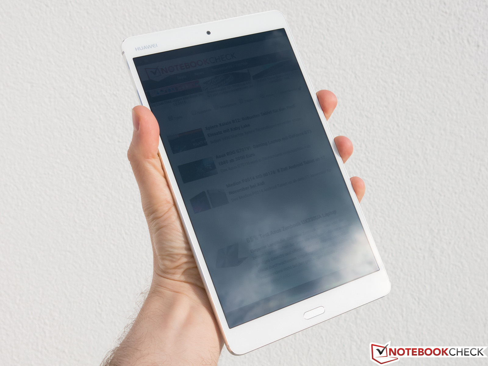 Da die Maximalhelligkeit des Displays relativ hoch ausfällt, kann das MediaPad M3 auch im Freien verwendet werden. Spiegelungen sowie direkte Sonneneinstrahlung sollten für eine leichte Ablesbarkeit des Bildschirms aber dennoch vermieden werden.