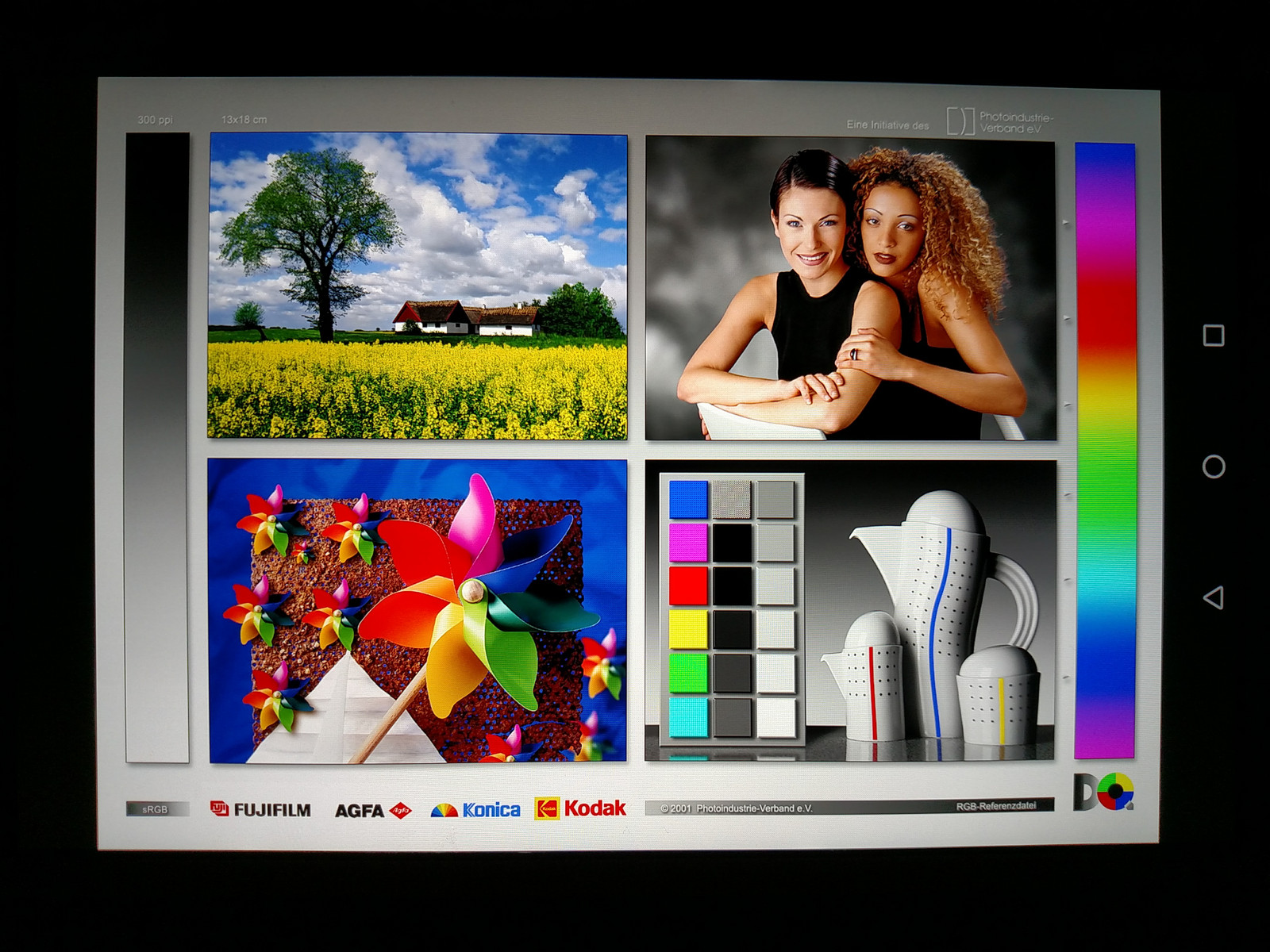 Der Bildschirm hat eine gute Farbgenauigkeit. Der Delta-E-Wert von 4.1 ist für professionelle Video- und Bildbearbeitung ein wenig zu hoch, aber da das Tablet hauptsächlich für den Medienkonsum gedacht ist, wird das nicht weiter stören und die Farben erscheinen lebendig und kraftvoll. Die Abbildung von Farben und Graustufen ist zwar nicht so genau wie bei manchen Premium-Tablets wie dem iPad Mini 4, ist aber, vor allem für diesen Preis, für Verbraucher gut geeignet. Wir haben kein PWM festgestellt und der Bildschirm reagiert schnell auf Farbveränderungen. Generell ist der Bildschirm hell, gleichmäßig ausgeleuchtet und hat lebendige Farben - somit sollte dem Filmvergnügen nichts mehr im Wege stehen.