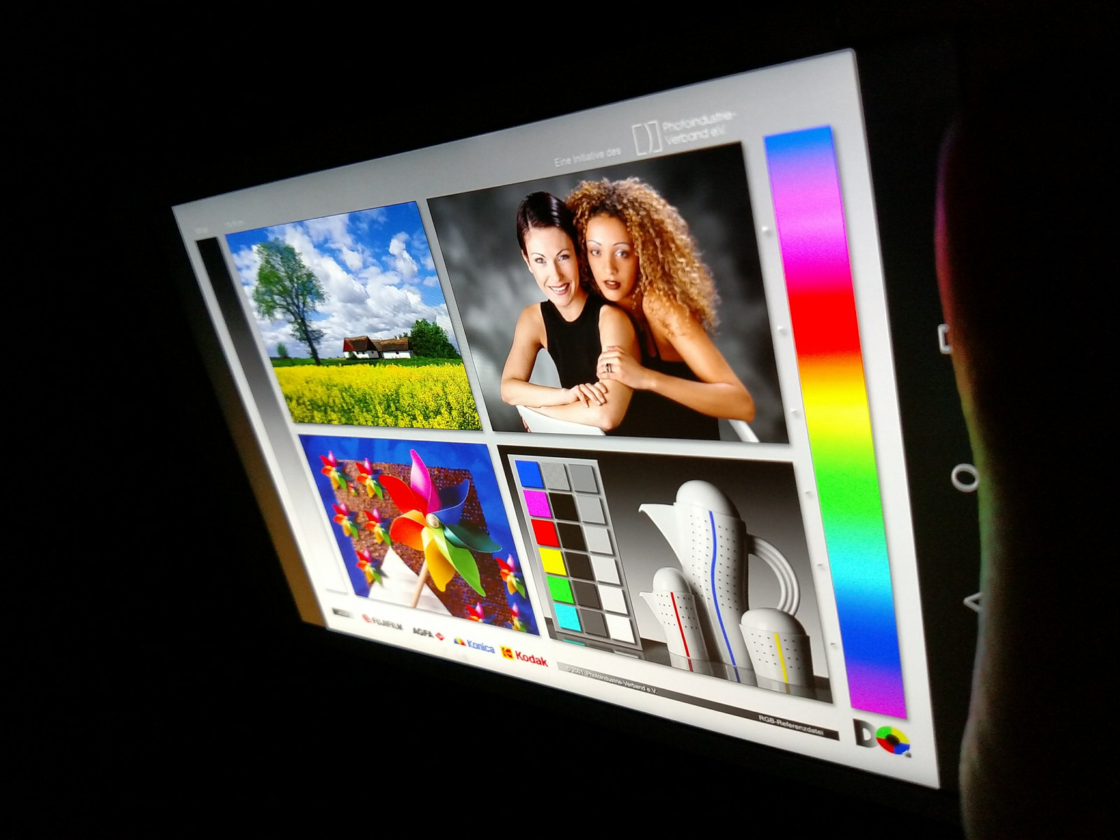 Dank des IPS-Panels sind die Blickwinkel ausgezeichnet. Farben verändern sich nicht und Texte können auch noch von der Seite gelesen werden.