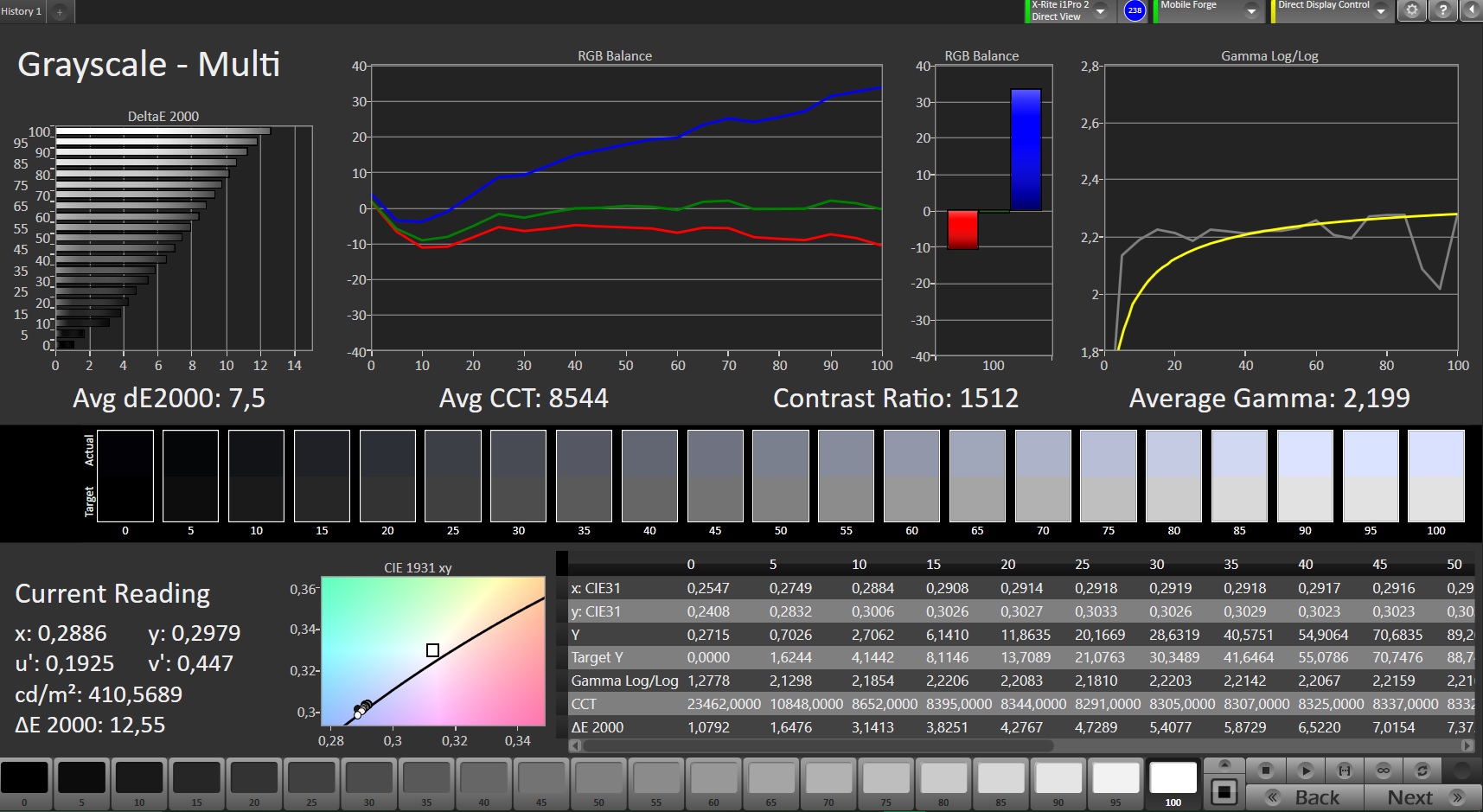 ΔE Greyscale Calman: 7.5 | ∀{0.09-98 Ø5}