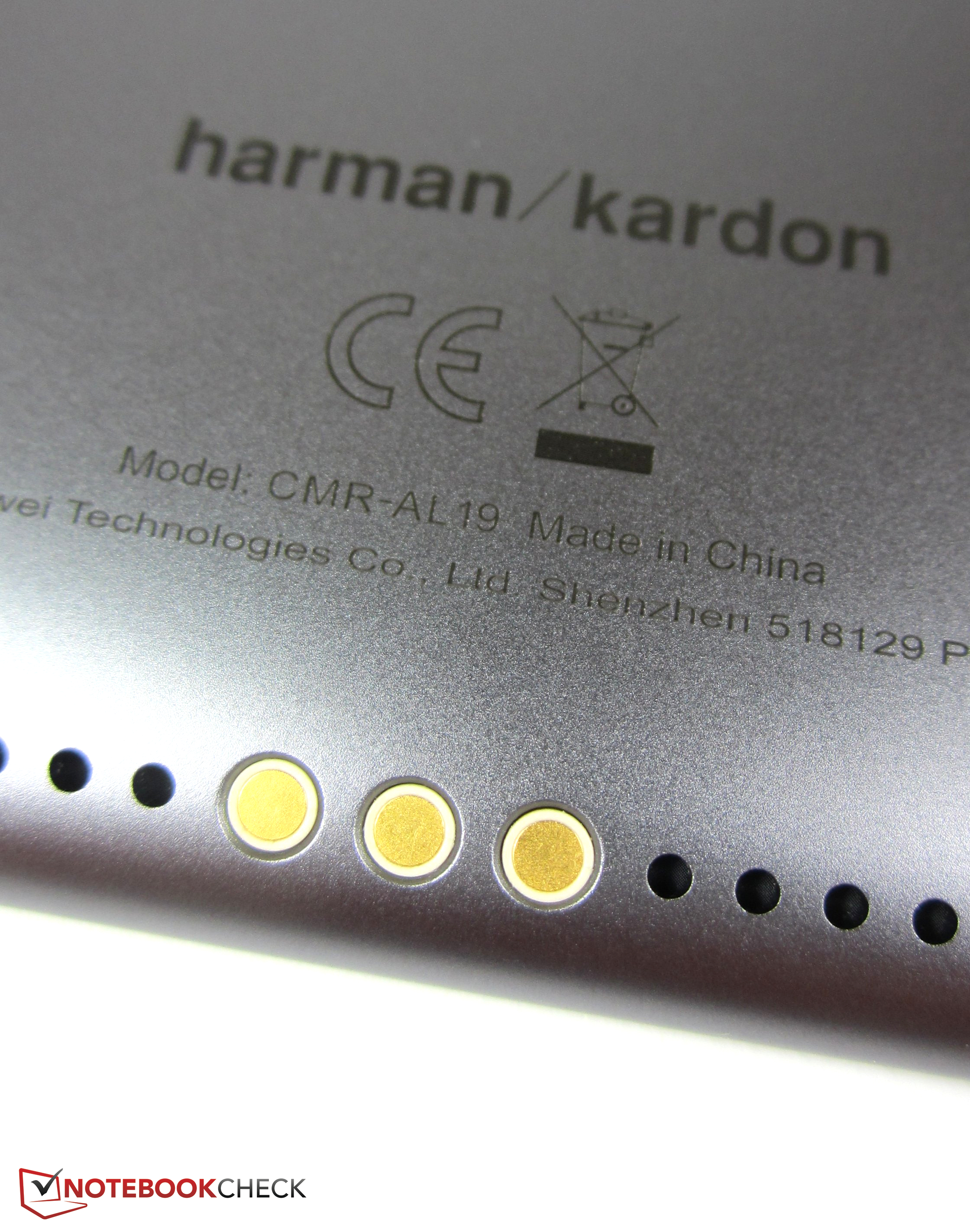 Im Gehäuse des MediaPad M5 10.8 Pro hat Huawei vier Lautsprecher von Harman Kardon untergebracht, von denen jeweils zwei an der Kopf- und Fußseite des Tablets sitzen. Laut Huawei sollen die Lautsprecher einen leistungsstarken 3D-Sound vermitteln, was tatsächlich nicht zuviel versprochen ist. Im Test schafft es das Lautsprecher-Quartett des MediaPad M5 10.8 Pro erstaunlich gut, einen Surround-Sound zu erzeugen, der obendrein mit sehr gleichmäßigen Mitten und Höhen punktet. Im Klangbild gehen die Bässe zwar etwas unter, dafür verzerrt die Wiedergabe auch bei maximal aufgedrehtem Lautstärkeregler nicht.