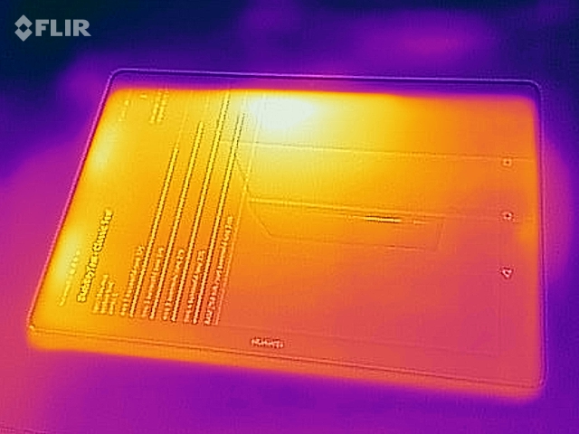 (+) Auf der Unterseite messen wir eine maximalen Wert von 39.5 °C (im Vergleich zum Durchschnitt von 33.2 °C).