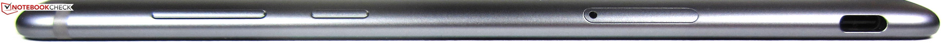 Alle physischen Bedienelemente (Fingerabdrucksensor, Power-Taste, Lautstärkewippe) sind auf der rechten Seite des Tablets untergebracht. Ersterer kann die Funktion der auf dem Display abgebildeten Android Tasten übernehmen und damit als externe Navigationsleiste dienen. Eine ähnliche Funktionalität bietet der NaviDot, ein frei auf dem Bildschirm platzierbarer Button, der sich ebenfalls für die Systemnavigation eignet.