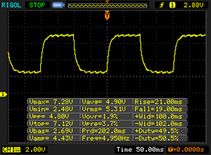 | 40 ms ... steigend ↗ und fallend ↘ kombiniert | ↗ 21 ms steigend | |