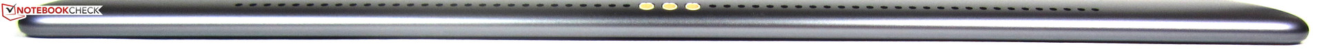 Liegt das Tablet auf einer ebenen Unterlage, kommt man aufgrund der Chassis-Rundung schwer bis gar nicht an die Power-Taste beziehungsweise die Lautstärkewippe heran, was je nach Situation praktisch bis ärgerlich sein kann. Hat man die Navigationsfunktion für den Fingerabdrucksensor aktiviert, muss man aufpassen, ihn nicht versehentlich zu berühren, wenn man das Tablet im Querformat hält.