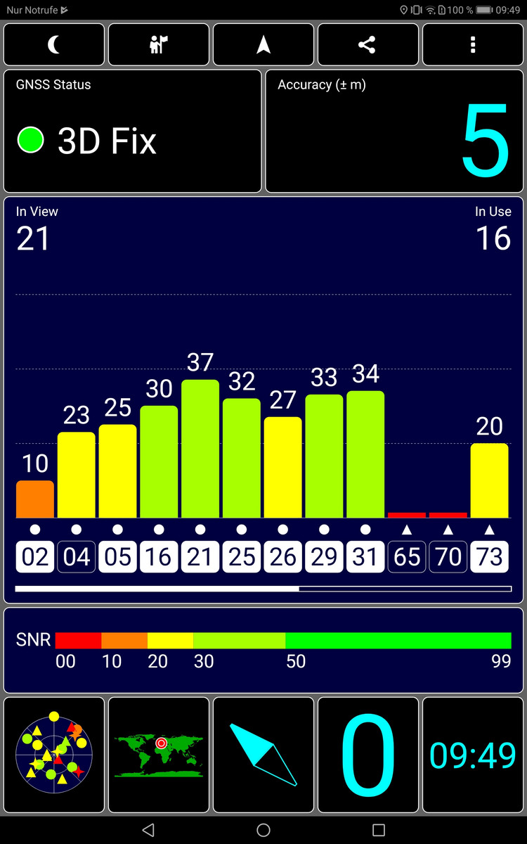 Seinen aktuellen Standort bestimmt das MediaPad M5 10.8 Pro über GPS, A-GPS und GLONASS, was ihm im Test im Freien und innerhalb von Gebäuden relativ schnell und mit einer Genauigkeit von jeweils 5 Metern gelang. Ganz anders fiel das Ergebnis dagegen beim Huawei MediaPad M5 10.8 aus: Hier klappte die Ortung im Gebäude gar nicht, im Freien lediglich stark zeitverzögert und wenig präzise. Dabei muss man der Fairness halber aber auch sagen, dass die GPS-Messungen an zwei verschiedenen Orten stattfanden und es das MediaPad M5 10.8 Pro bei der „im Gebäude“-Messung einfacher hatte (Holzständerbauweise gegenüber Stahlbeton).