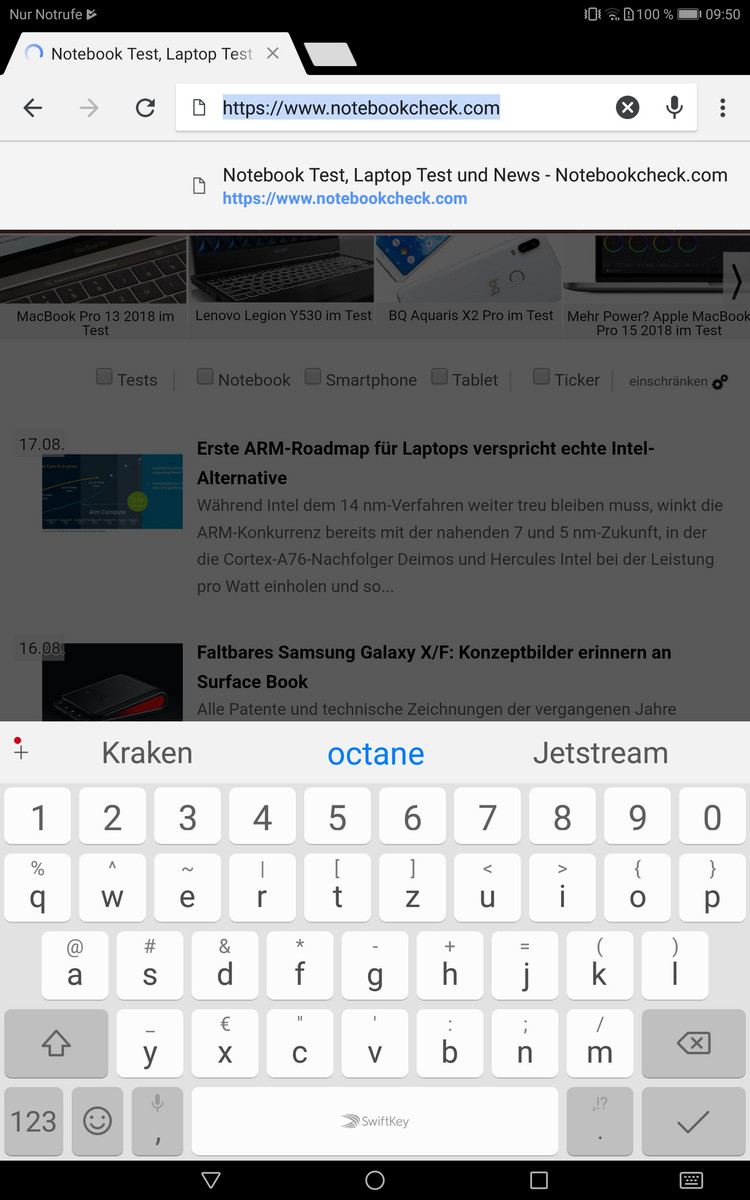 Bei der Browser-Performance kann kein anderes Tablet dem Apple iPad 6 (2018) das Wasser reichen. Allerdings erweist sich das MediaPad M5 10.8 Pro auch hier als hartnäckigster Verfolger des Apple Überfliegers und schafft es damit ein weiteres Mal auf den zweiten Platz. Das Surfen im Web läuft mit dem Tablet gefühlt sehr flott ab. Lediglich bei aufwändigen HTML5-Webseiten wie dem Flipper-Spiel Ouigo Let's Play muss man etwas Wartezeit einplanen, wird dann aber mit einer sehr flüssigen Darstellung belohnt.