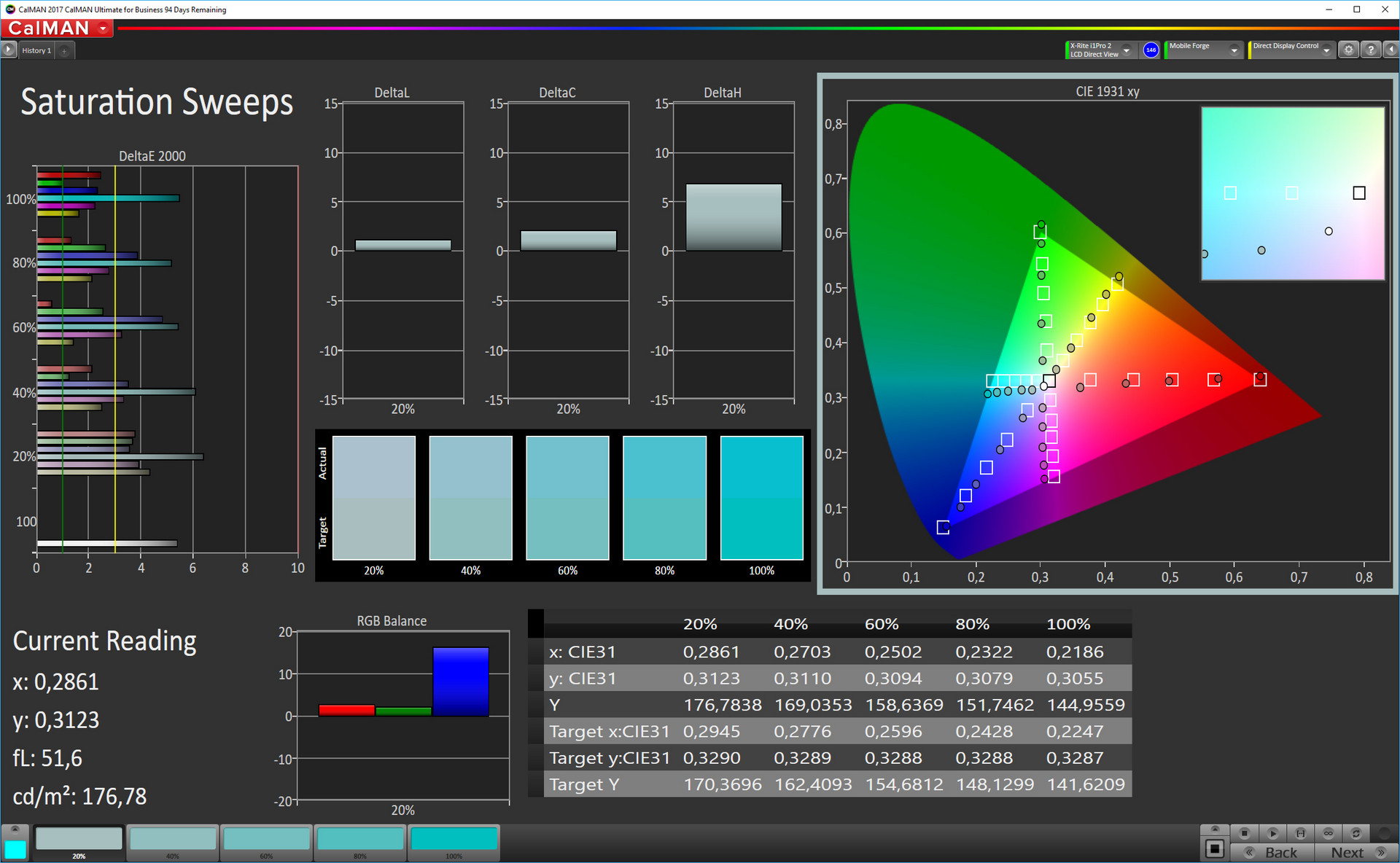 ΔE Greyscale Calman: 1.4 | ∀{0.09-98 Ø5}
