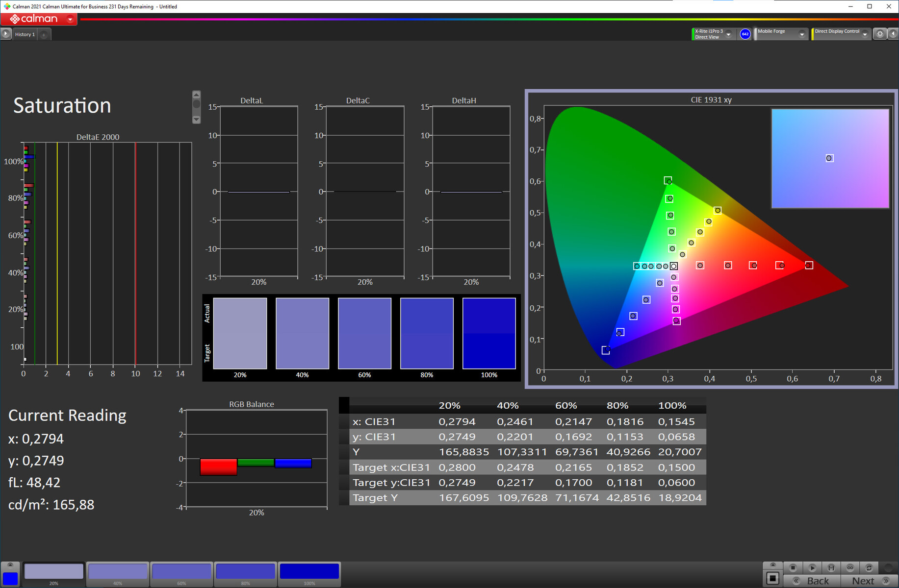 | Delta E Colorchecker * | 0.6 | 1 -67% | 2.16 -260% | 4.57 -662% |