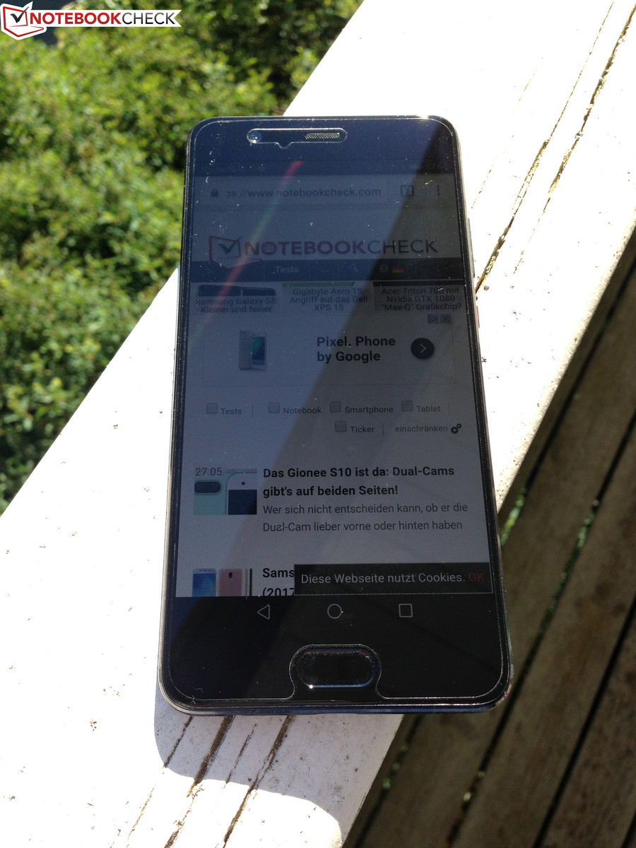 Aufgrund seines leuchtstarken Displays lässt sich das Huawei P10 Plus gut im Freien einsetzen. Auch an sonnigen Tagen lassen sich Inhalte noch gut auf dem Display erkennen. IPS-typisch ist die Blickwinkelstabilität durchwegs hoch und sorgt dafür, dass man auch aus extremen Seitenansichten das Bild hell und unverfälscht einsehen kann.