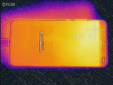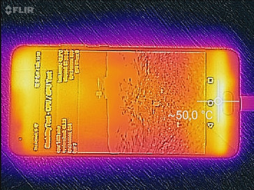 Im Betrieb erwärmt sich das P10 Plus sehr schnell. Bereits im Leerlauf messen wir punktuell bis zu 42,6 °C, unter Last sogar bis zu 49,1 °C. Beide Maximaltemperaturen sind thermisch zwar völlig unbedenklich, machen es bei längerer intensiver Nutzung aber nicht unbedingt angenehm, das Smartphone in der Hand zu halten.