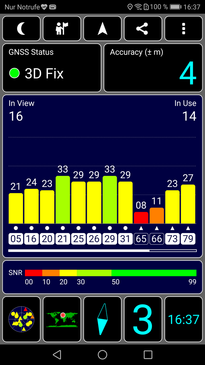 Über GPS, Glonass, Galileo und BeiDou (BDS) bestimmt das Huawei P10 Plus seine aktuelle Position. Im Test gelingt ihm das schon in Innenräumen schnell und läuft im Freien erwartungsgemäß noch etwas flotter ab. Die dabei erreichte Präzision ist die gleiche: Bis auf 4 Meter genau bestimmt das P10 Plus unseren Standort. Auf einer rund 12 Kilometer langen Fahrradtour kann es dann auch dem Profi-Navigationsgerät Garmin Edge 500 sehr gut Paroli bieten. Bis auf kleinere Abweichungen liegt das P10 Plus stets auf der richtigen Spur und misst insgesamt nur eine um 100 Meter kürzere Gesamtstrecke als das Edge 500.
