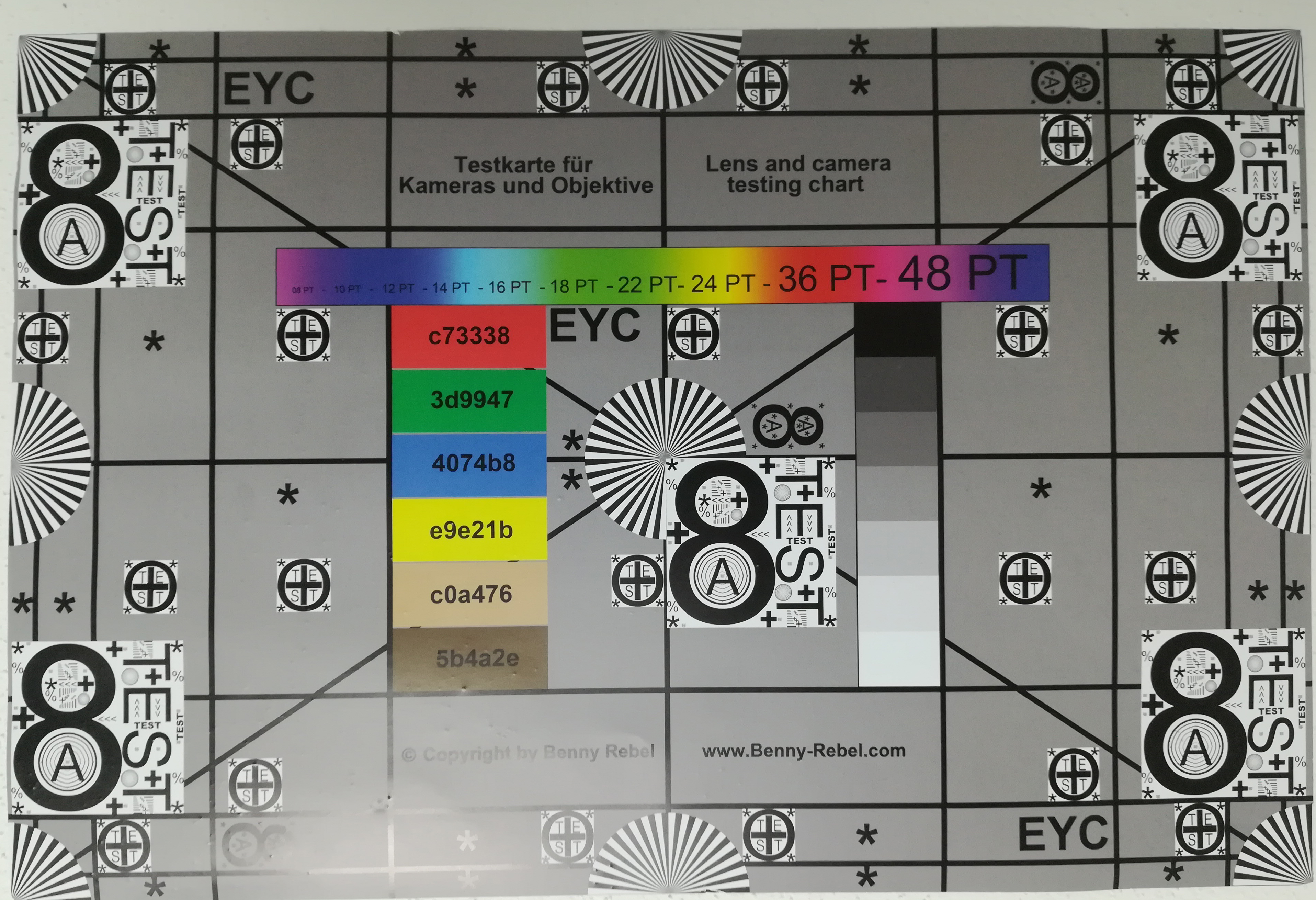 Szene 1Szene 2Szene 3Auch die Analyse der rückwärtigen Kamera in unserem Fotostudio bei festgelegten Lichtbedingungen bringt gute Ergebnisse: Farbflächen wirken recht einheitlich und nicht zu körnig, zu den Rändern hin nimmt die Schärfe aber leicht ab. In der Bildmitte ist die Schärfe gut. Auch Farben werden ganz gut dargestellt, die meisten Töne sind allerdings etwas zu hell im Vergleich zum Referenzfarbraum.