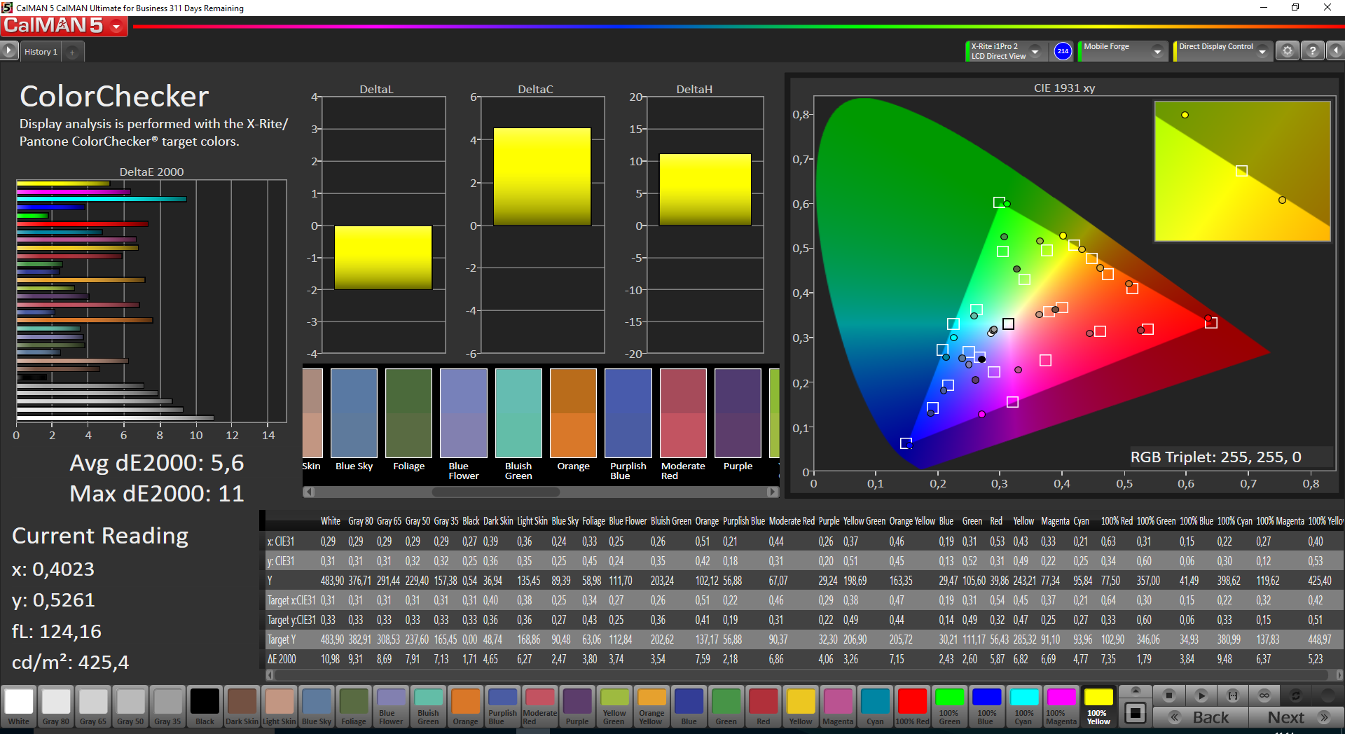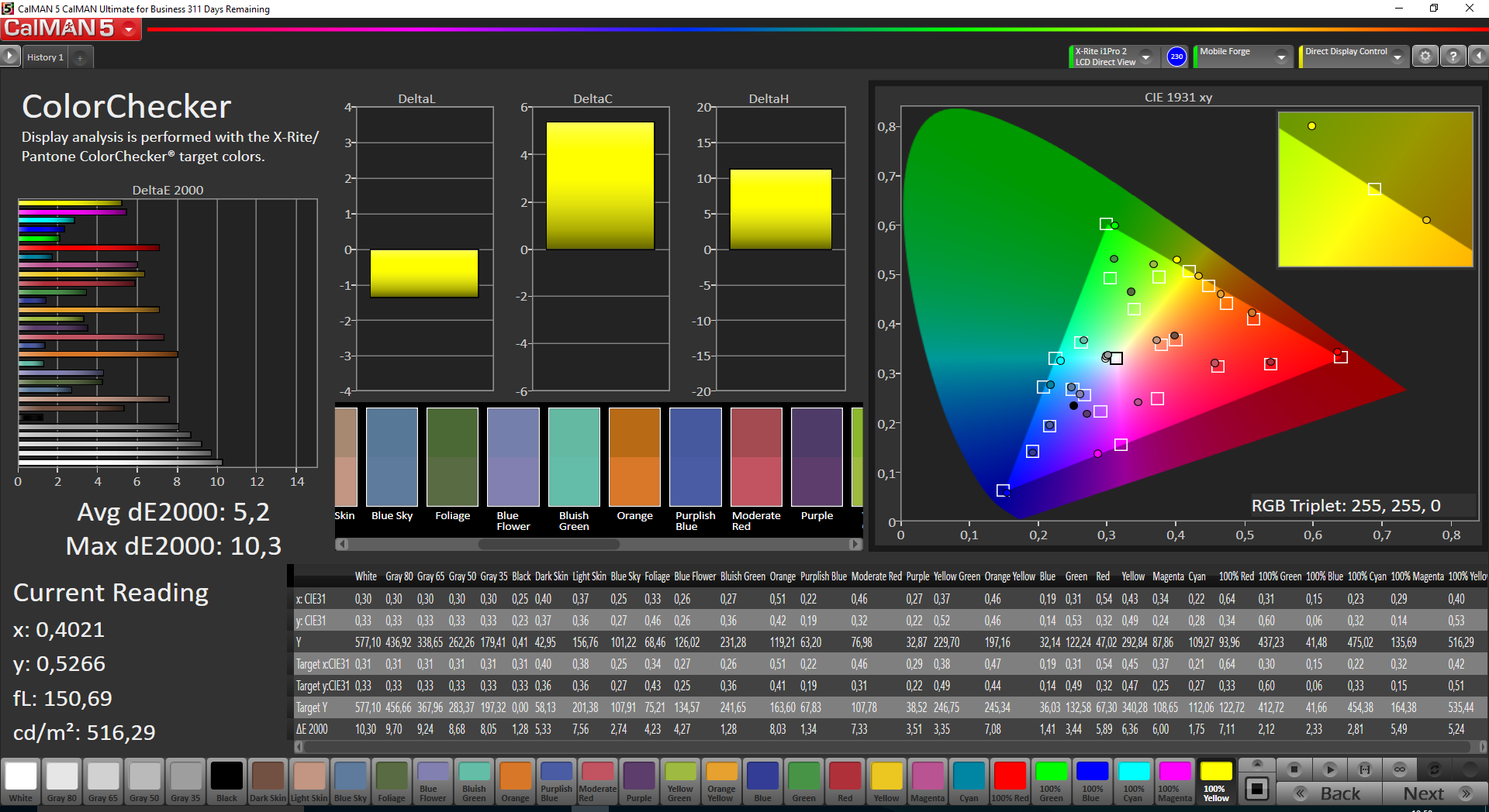 ΔE ColorChecker Calman: 5.2 | ∀{0.5-29.43 Ø4.78}
