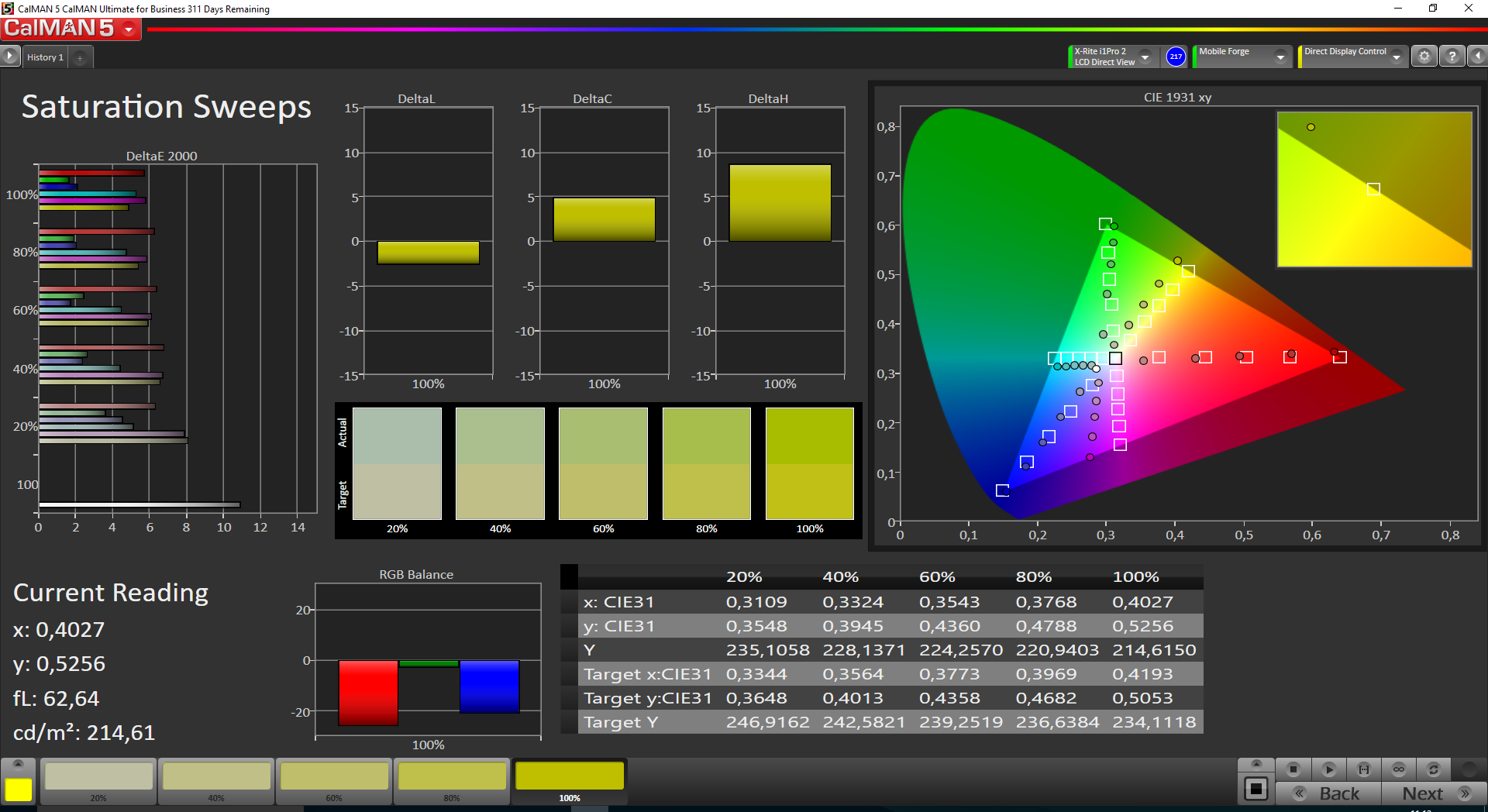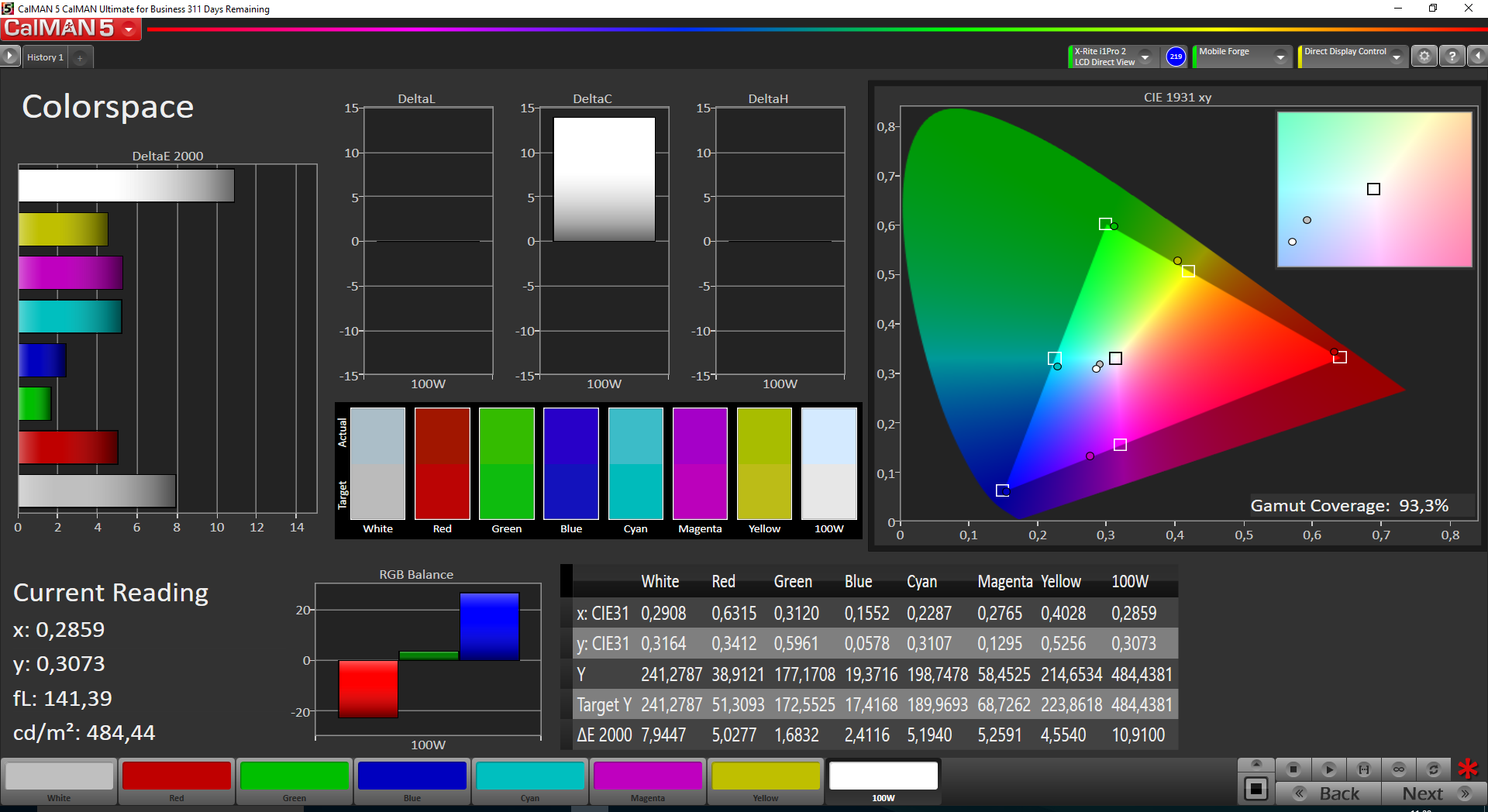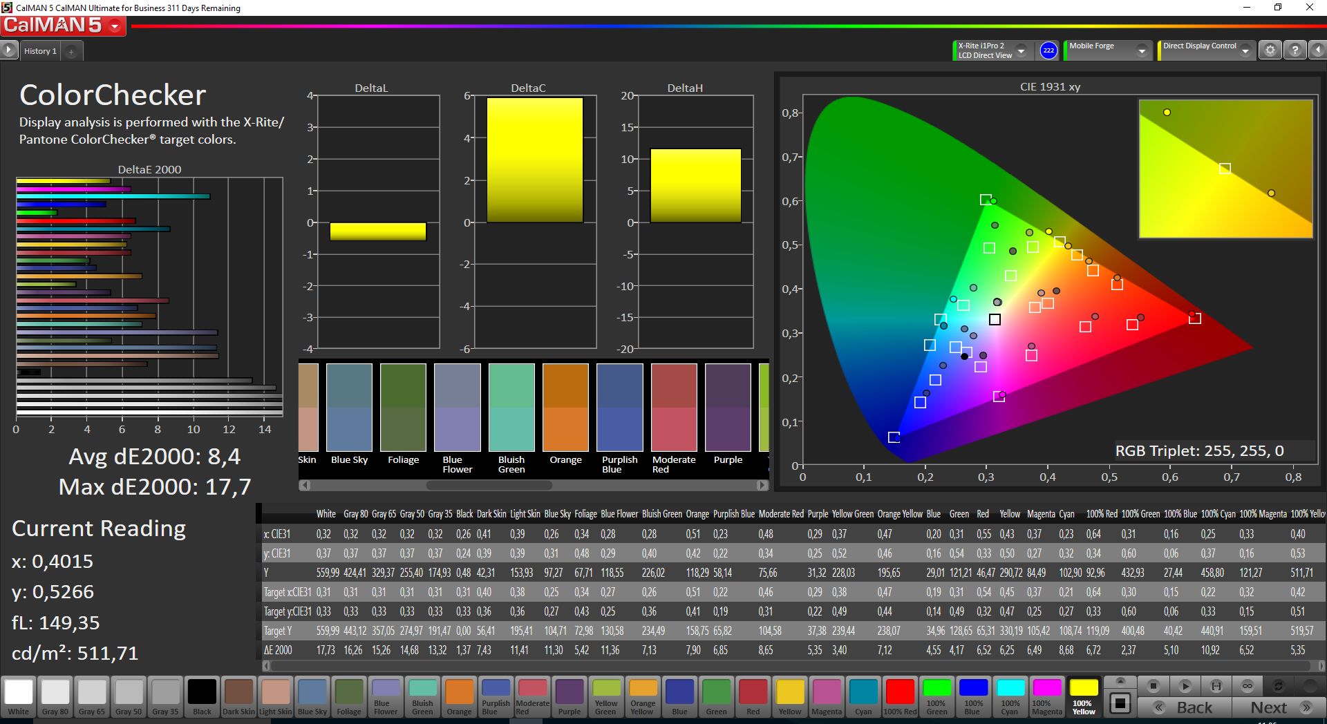 | Delta E Graustufen * | 7.2 | 5.85 19% | 4.8 33% | 4 44% | 2.7 62% |