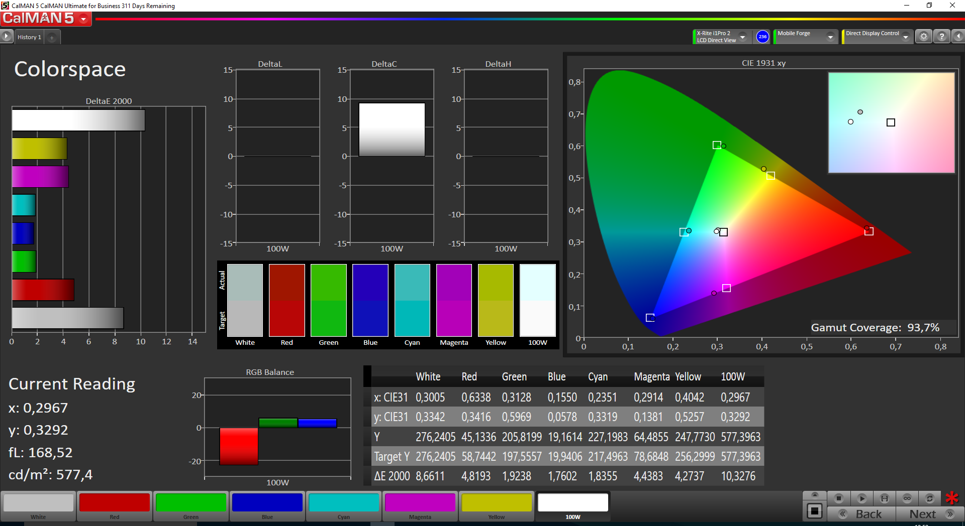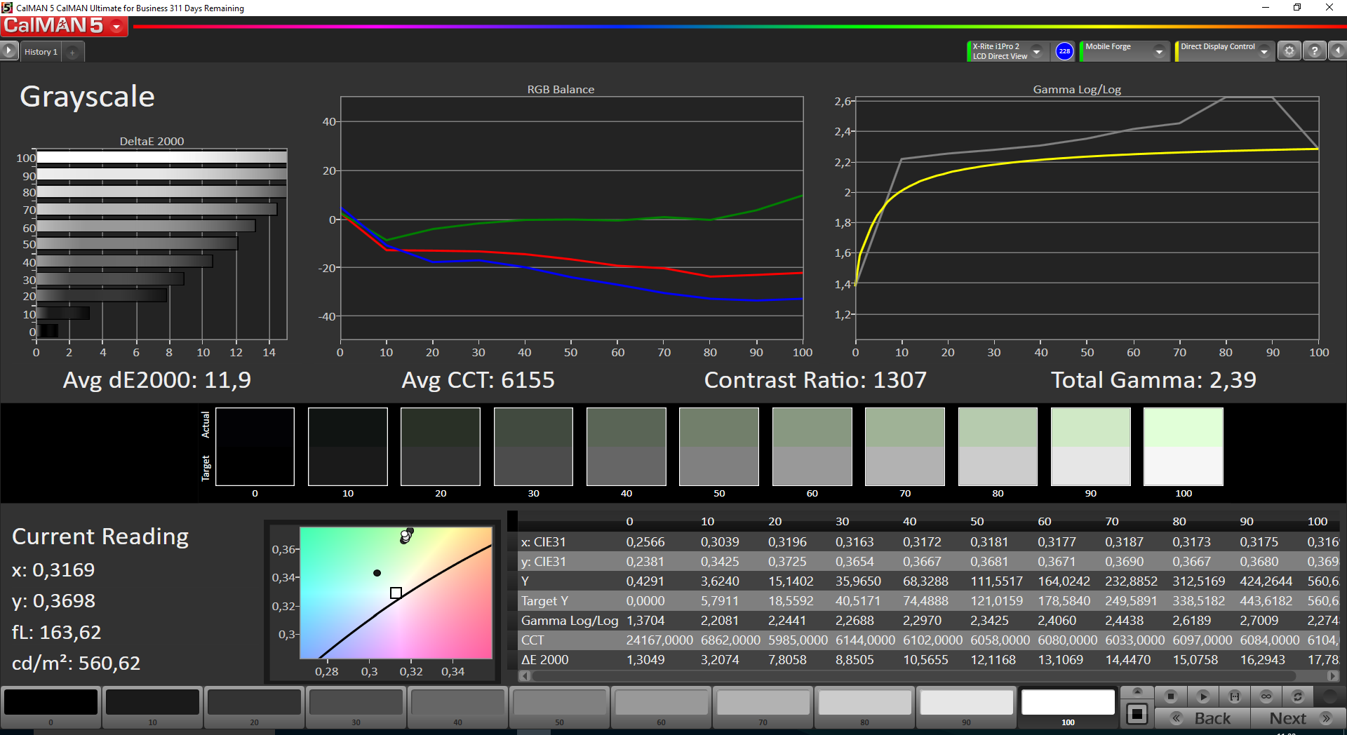 ΔE Greyscale Calman: 7.2 | ∀{0.09-98 Ø5}