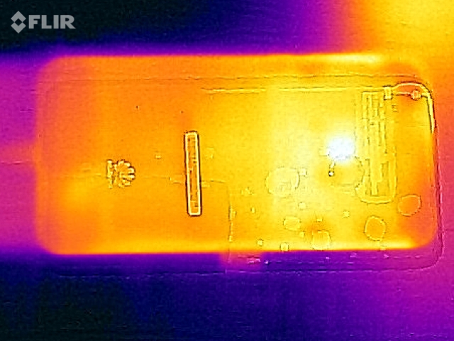 (+) Auf der Unterseite messen wir eine maximalen Wert von 31.9 °C (im Vergleich zum Durchschnitt von 34 °C).