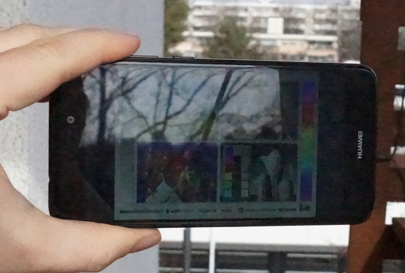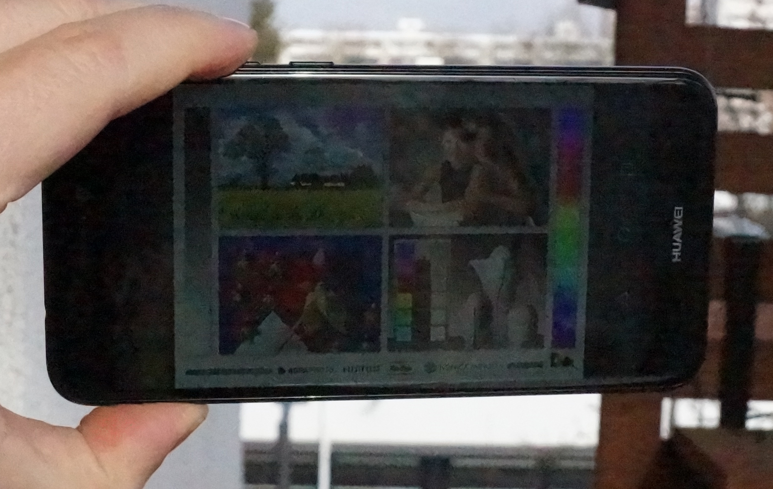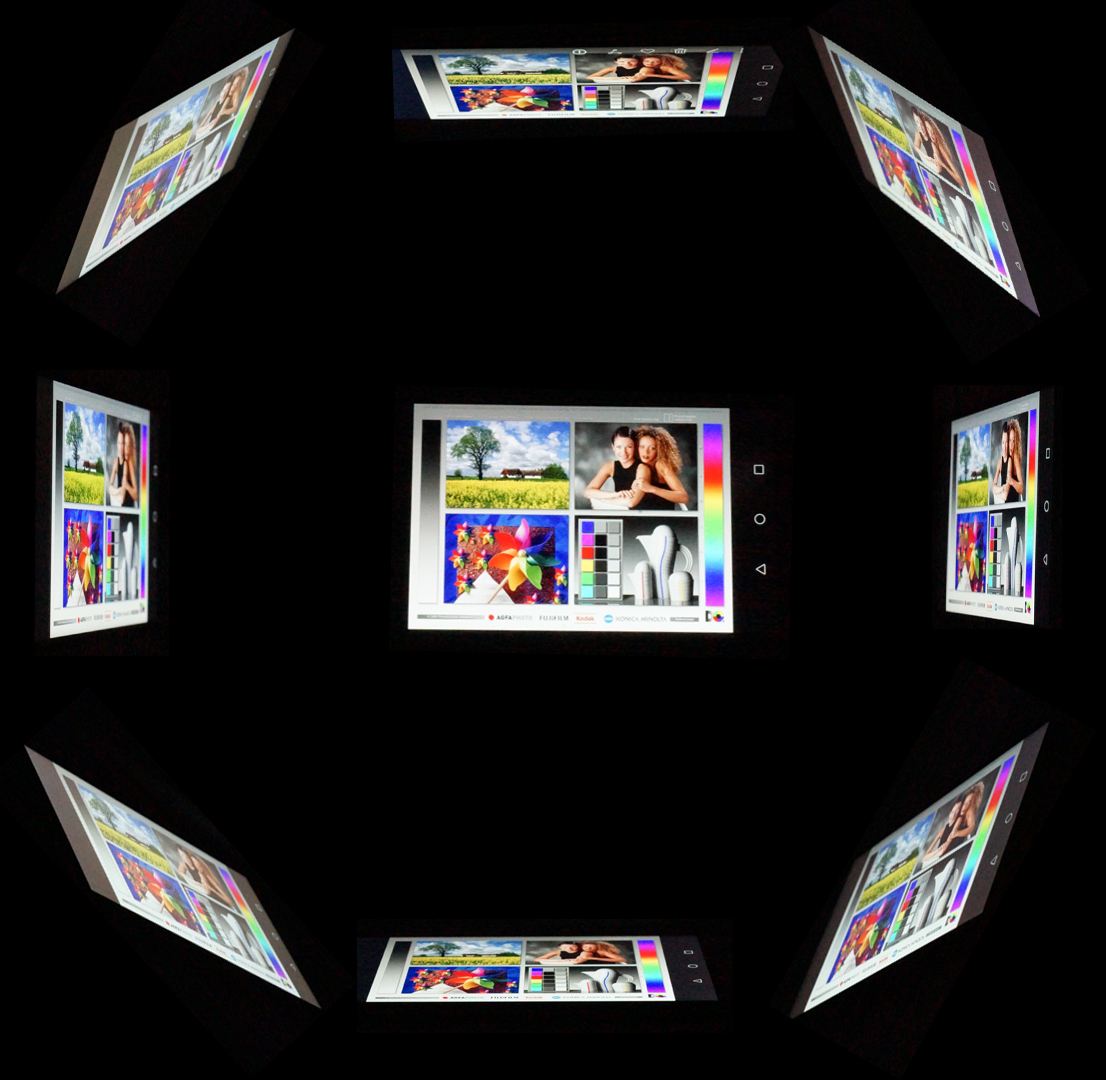 Die sehr hohe maximale Bildschirmhelligkeit führt dazu, dass man das Smartphone auch an helleren Tagen draußen verwenden kann. Der stark spiegelnde Screen ist allerdings hier oft ein Ärgernis. Die Blickwinkel sind sehr gut, auch aus sehr flachen Winkeln sieht man die Bilder auf dem Bildschirm noch sehr deutlich.
