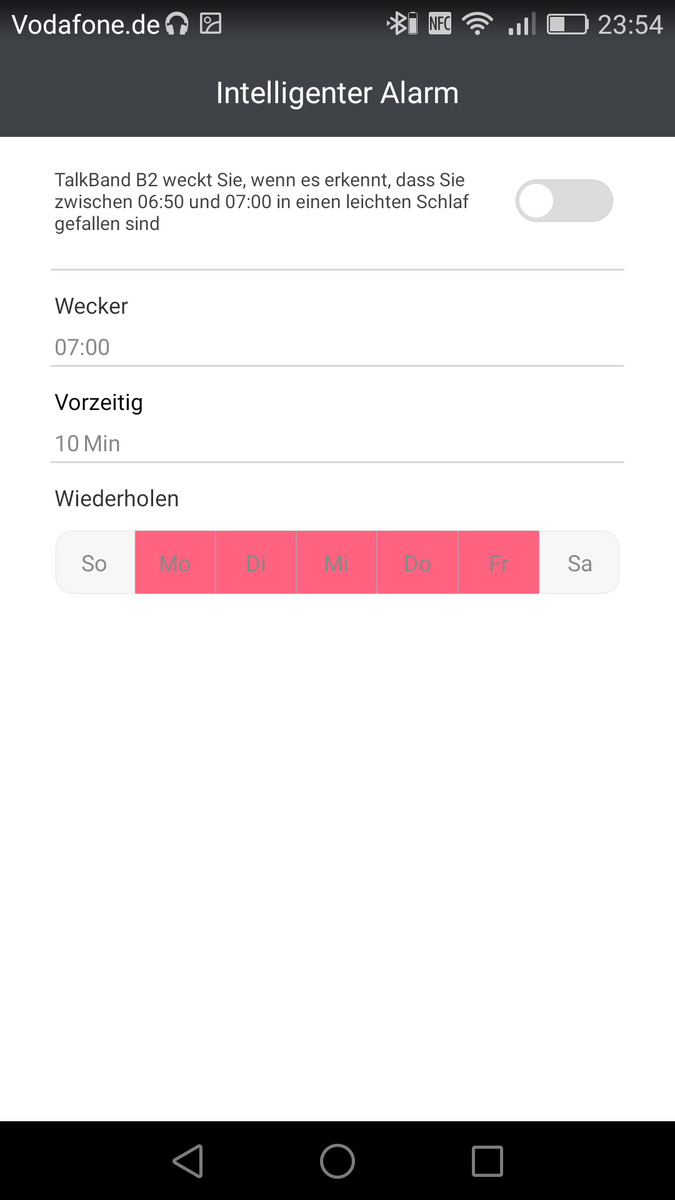Größtes Ärgernis ist die schwache Panelbeleuchtung. In der Sonne ist praktisch nichts auf dem TalkBand B2 zu erkennen. Dafür erhält man eine mehrtägige Akkulaufzeit, von der vollwertige Smartwatches momentan nur träumen können.