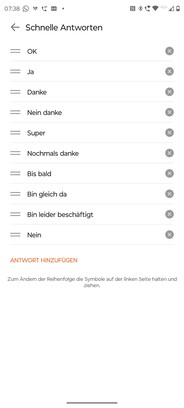 Antworten sind nur mit Emojis und vorgefertigten Kurzantworten möglich. Diese können in der Smartphone-App in der Reihenfolge verändert und individualisiert werden.