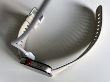 Wir nutzen im Test ein 12 Watt Netzteil. Da die Watch Fit 3 kein drahtloses Laden unterstützt, muss zwingend das proprietäre Ladekabel genutzt werden, das magnetisch auf der Unterseite hält.