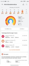 Bei den Aktivitätszielen setzt Huawei weiterhin auf zwei verschiedene Darstellungen. Einerseits gibt es die bekannten Ringe, diese zeigen bei der Watch Fit 3 die Zeit im Stehen, die Trainingszeit und die verbrannten Kalorien an.