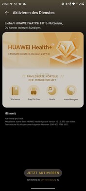 Teilweise sind die Kurse kostenlos, teilweise ist eine kostenpflichtige Mitgliedschaft bei Huawei Health+ notwendig. Mit dem Kauf der Watch Fit 3 kann das Zusatzangebot drei Monate kostenlos genutzt werden.