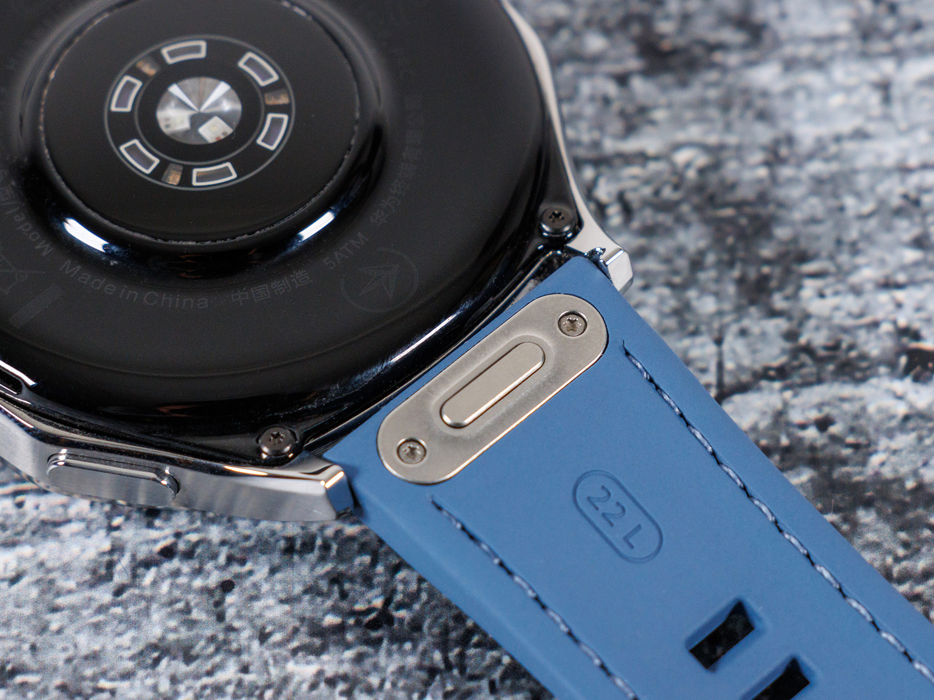 Bei den Armbändern handelt es sich um einen gängigen 22-mm-Schnellverschluss, der das werkzeuglose Wechseln ermöglicht. Damit sind Drittanbieterbänder für die Huawei-Smartwatch ebenfalls problemlos nutzbar.