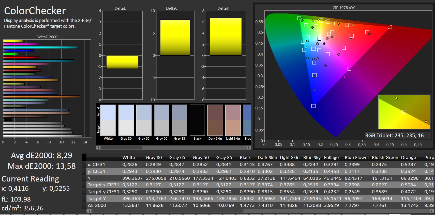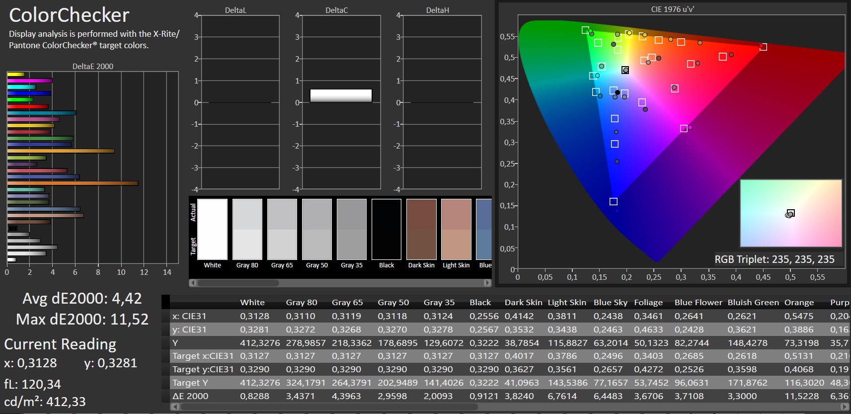 | Colorchecker dE 2000 calibrated * | 4.42 | ||||