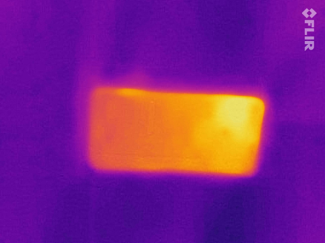 Die maximale Gehäuseerwärmung beträgt 35,8 °C und ist lokal recht begrenzt auf den oberen Bereich des Smartphones. Die Erwärmung ist leicht spürbar, aber keineswegs kritisch. An der Rückseite im Bereich der Kamera erwärmt sich das Gerät unter voller Last nur auf 33 °C.