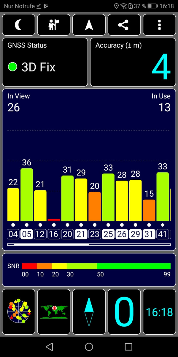 Das GPS-Modul kann uns in Innenräumen nicht orten, im Freien dauert es dafür nicht lange, bis wir auf gute 4 Meter genau auf der Karte platziert werden. Im Huawei Y6 2018 ist kein Kompass verbaut, sodass die Blickrichtung bei Google Maps nicht bestimmt werden kann, die Platzierung auf der Karte ist aber auch innerhalb von Gebäuden einigermaßen korrekt.