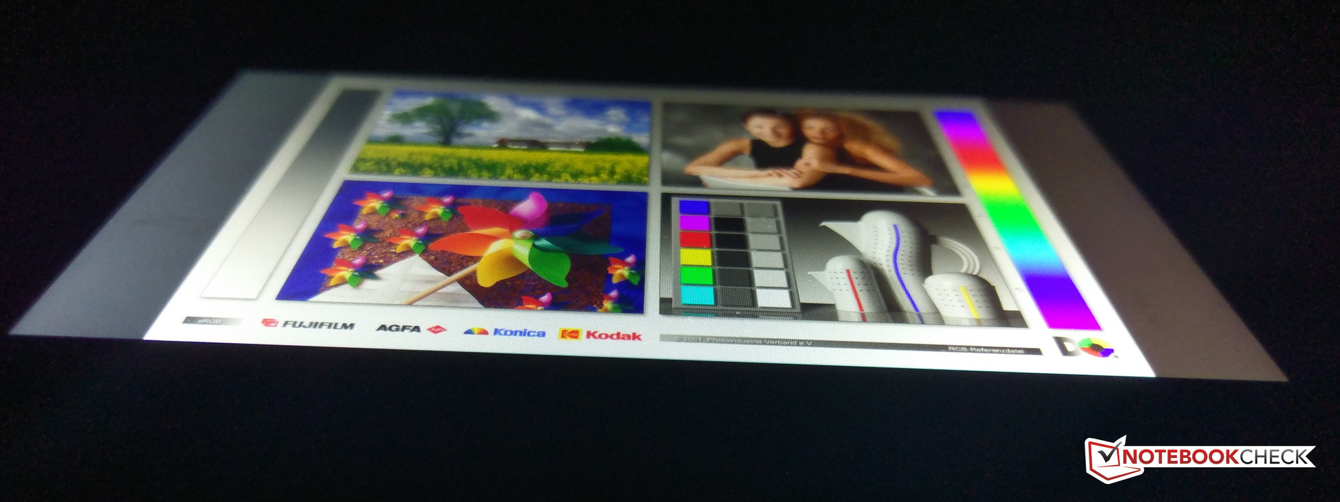 Die Luminanzmessung des X-Rite i1Pro2 ergibt im Test eine maximale Helligkeit von 407 cd/m². Mit aktiviertem Helligkeitssensor werden etwa 15 cd/m² weniger erreicht. Ebenso wie im praxisnahem APL50-Test (Average Picture Level) - hier messen wir einen Maximalwert von 389 cd/m².
