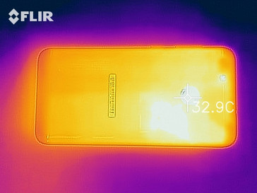 Die Oberflächentemperaturen des Huawei Y6 Pro (2017) sind ähnlich wie beim Schwestermodell Huawei Y6 (2017) sowohl im Idle- als auch im Last-Modus gering. Während im Geräteleerlauf auf der Rückseite die gemessenen Temperaturen nicht über 27 °C ansteigen, bleiben sie auch unter andauernder Last mit 32 °C vergleichsweise sehr niedrig.