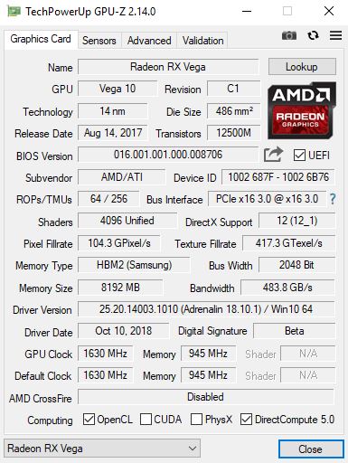 | AMD Radeon RX Vega 64 | |