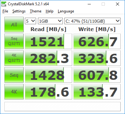 Die Transferraten des SD-Lesers sind mit rund 88 MB/s nur durchschnittlich. Beim Kopieren eines 1 GB großen Ordners mit Bildern von unserer Toshiba Referenzkarte (Exceria Pro UHS-II) vergehen 13 Sekunden. Einige High-End Gaming-Laptops wie das GS73VR sind hier mit weniger als 6 Sekunden schneller unterwegs. Es könnte zwar schneller gehen, aber der Kartenleser des NUC ist zumindest schneller als bei Zotacs ZBOX-Systemen.