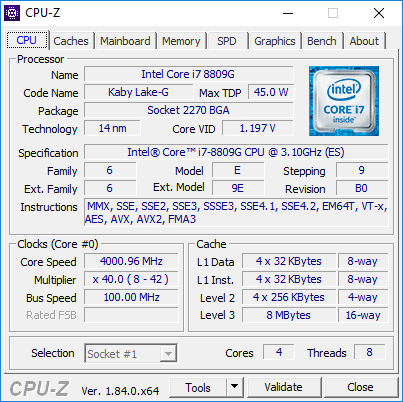 Weitere technische Informationen und Benchmarks zum Core i7-8809G gibt es hier.