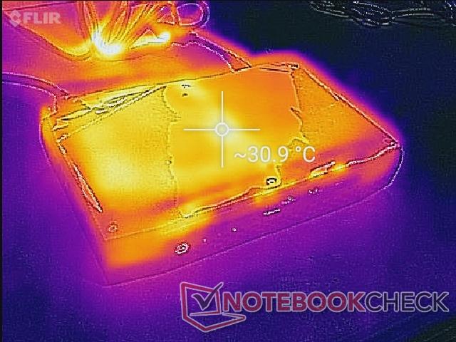 Die Oberflächentemperaturen des neuen Hades Canyon NUC fallen trotz dem schnelleren Prozessor geringer aus als beim Vorgänger. Bei diesem konnten wir unter Last noch bis zu 42 °C ermitteln, doch die aktuelle Version wird nicht wärmer als 30 °C, unabhängig von der Belastung.
