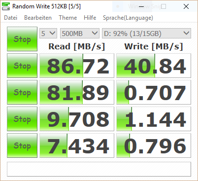 Die hohen Transferraten bei den sequentiellen Tests bestätigen den Einsatz einer NVMe-SSD. Auch die 4K-Ergebnisse (Read & Write) fallen gut aus, also sollte es auch beim Hantieren mit großen Dateien keine Einschränkungen geben. Dazu gehören beispielsweise 4K-Videos. In einem Test des SD-Kartenlesers konnten wir mit einer Speicherkarte von Lexar (Pro SDXC UHS 3 16 GB) sequentielle Leseraten von mehr als 80 MB/s ermitteln, während die sequentiellen Schreibgeschwindigkeiten laut CrystalDiskMark bei knapp über 40 MB/s lagen.