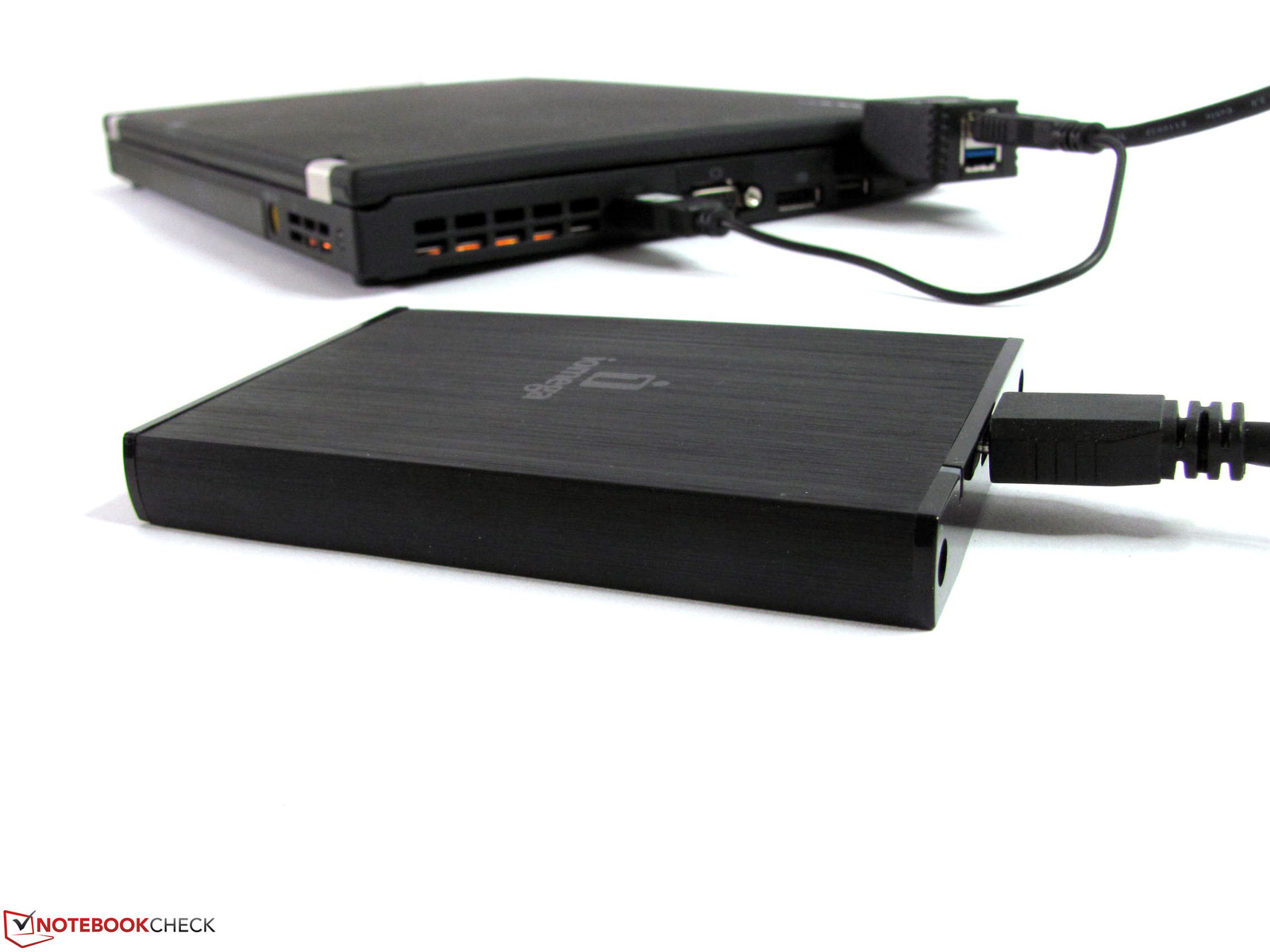 An ExpressCards ohne zusätzliche USB Stromversorgung läuft die Festplatte erst gar nicht an. Hier benötigt man also einen USB Port der die USB-3.0-ExpressCard mit Strom versorgt und zusätzlich das beiliegende Y-Kabel. Insgesamt also 2x USB 2.0 + 1x USB 3.0. Diese dann abenteuerliche Konstruktion läuft aber zuverlässig und liefert am Notebook konstante Übertragungsraten ohne Ausfallerscheinungen. Auch „nur“ am USB-2.0-Port angeschlossen, gab es keine Probleme, da diese mittlerweile den Strombedarf weit außerhalb der USB-Spezifikation abdecken und oft sogar optische Laufwerke mit über 1000 mA Anlaufstrom befriedigen. Hier ist die Übertragungsrate aber bei etwas über 32 MB/s gedeckelt und nicht wirklich der Sinn einer USB-3.0-Festplatte.