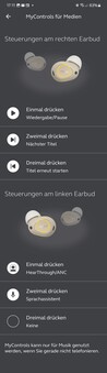 Jeder Ohrhörer hat eine physische Taste, die auf ein- bis dreimaliges Drücken reagiert und nach den eigenen Bedürfnissen belegt werden kann. Neben der Medien- und Anrufsteuerung ist darüber auch die Aktivierung eines vordefinierten Sprachassistenten auf dem verbundenen Gerät möglich.