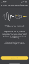 Die passive Geräuschunterdrückung reduziert Umgebungsgeräusche bereits deutlich. Die aktive Geräuschunterdrückung sollte zunächst auf die eigenen Bedürfnisse angepasst werden, um ein bestmögliches Ergebnis zu erzielen. Dann mildert sie tiefe Frequenzbereiche zwar ab, diese bleiben aber hörbar, sodass das ANC insgesamt einen durchschnittlichen Eindruck hinterlässt. Praktisch ist die justierbare HearThrough-Funktion, mit welcher Umgebungsgeräusche über die Mikrofone in Ohr geleitet werden können. Vor allem für Sportler in Städten sicherlich eine sinnvolle Ergänzung.