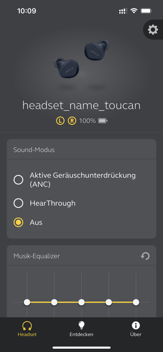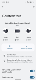 Die App Jabra Sound+ ist übersichtlich strukturiert und erlaubt die detaillierte Konfiguration der Kopfhörer, vor allem das ANC sollte vorab auf die eigenen Bedürfnisse angepasst werden, um ein optimales Ergebnis zu erzielen. Außerdem können hier auch die jeweiligen Firmware-Updates eingespielt werden. Android-Nutzer können viele der Einstellungen auch direkt in den Bluetooth-Einstellungen des Systems vornehmen.
