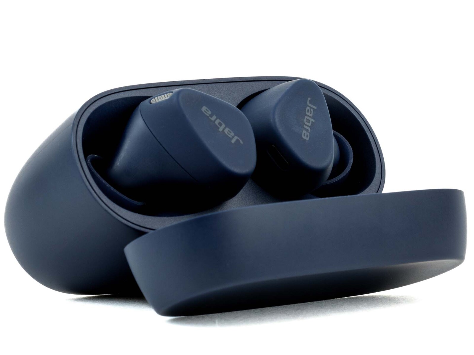 Die Jabra Elite 4 Active Kopfhörer sind in den Farbvarianten Schwarz, Mintgrün und Marine erhältlich, wobei es sich bei letzterem um unser Testprodukt handelt. Das Ladeetui besteht aus einem matten Kunststoff und fühlt sich haptisch sehr angenehm an. Ein Magnet verschließt das Case zuverlässig. Die Ohrhörer werden ebenfalls magnetisch arretiert und bleiben beim Transport fest mit den Ladekontakten verbunden. Die Kontaktflächen an den Ohrhörern sind zwar größtenteils im Gehäuse versenkt, an den innenliegenden Rändern sind sie jedoch nahe zu bündig, sodass es durchaus zu einem Hautkontakt kommen kann.