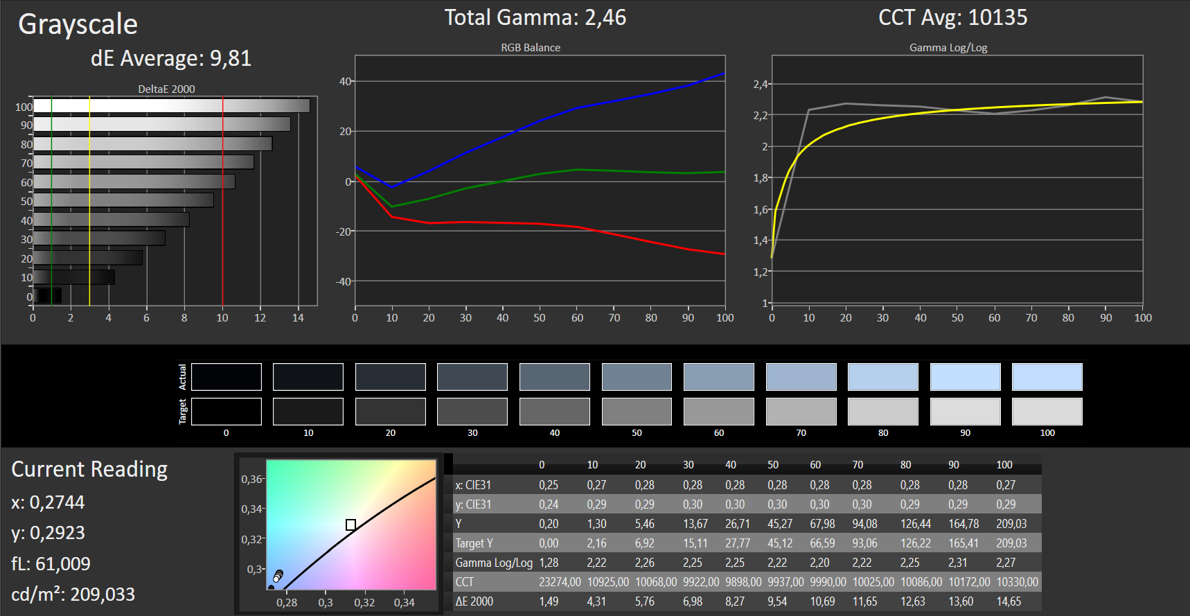 ΔE Greyscale Calman: 9.81 | ∀{0.09-98 Ø5}