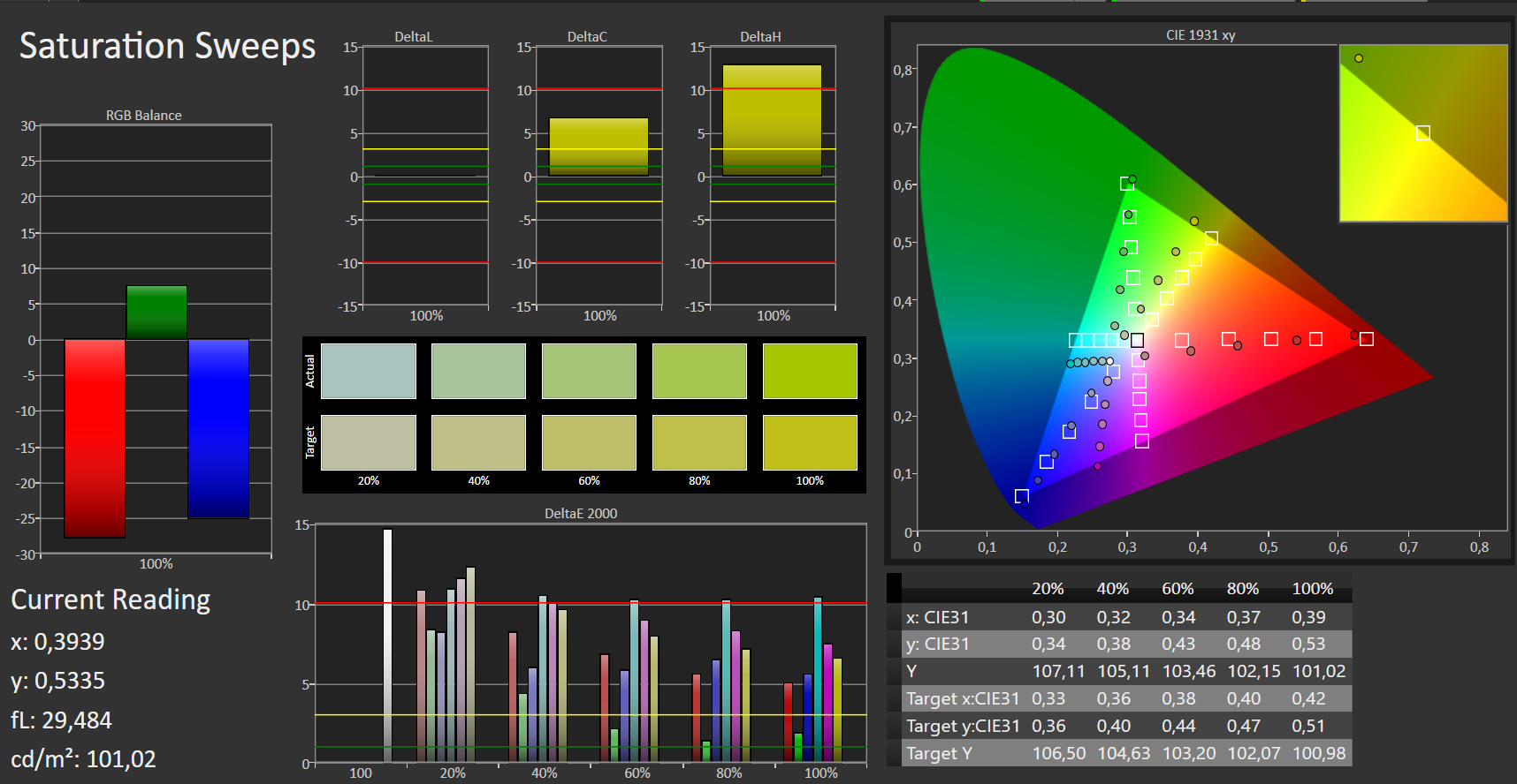| sRGB Coverage (%) | 88.7 | 61.1 -31% | 61.8 -30% | 96.1 8% | 94.9 7% |
