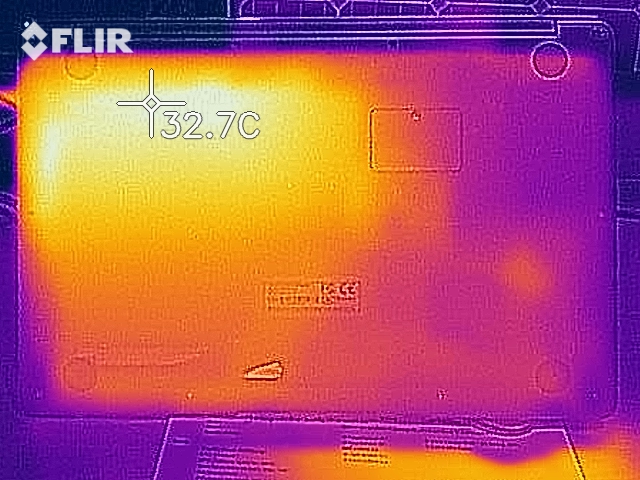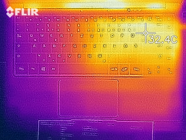 (+) Die Handballen und der Touchpad-Bereich sind mit gemessenen 25.9 °C kühler als die typische Hauttemperatur und fühlen sich dadurch kühl an.