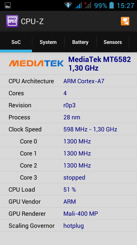 Kazam verbaut mit dem MediaTek MT6582 ein typisches Mittelklasse-SoC. Die Prozessoreinheit umfasst vier Cortex-A7-Kerne, die jeweils mit 1,3 GHz getaktet sind. Bei der Grafikeinheit handelt es sich um eine ARM Mali-400 MP2, ein schon etwas betagteres Modell, das aber gut zur Preisklasse passt. In der Vergleichsgruppe muss sich die ARM-Grafik mit Konkurrenten von Qualcomm und PowerVR messen lassen.