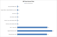 Die Zugriffszeiten liegen im Rahmen sind aber leicht erhöht. Im Durchschnitt sind es rund 0,4 Millisekunden, wobei schnelle SSDs in diesem Bereich nur 0,1 bis 0,2 Millisekunden benötigen. Möchte man auch hier den Vergleich zu einer 2,5-Zoll-Festplatte mit 5400 Umdrehungen pro Minute ziehen, erhält man eine Differenz von zirka 16 bis 18 Millisekunden, die sich im normalen Betrieb deutlich bemerkbar macht.