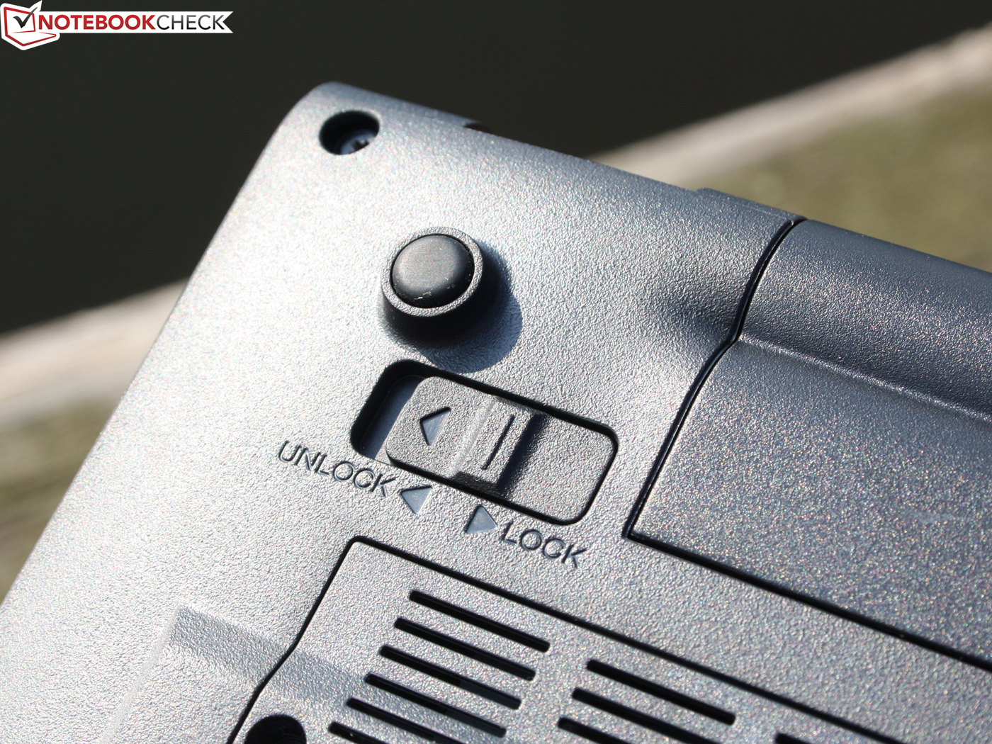 Das Chassis ist ausreichend verwindungsfest, kann aber mit Kraft ein stückweit verzogen werden. Die Unterseite zeigt einige Wartungsklappen, die teilweise deutlich eindellbar sind. Das Display-Gelenk sitzt fest am Chassis und lässt den Deckel kaum Nachwippen. Obwohl das Panel straff gehalten wird, brauchen wir wegen des hohen Gewichts der Base Unit nur eine Hand zum Öffnen des Notebooks.